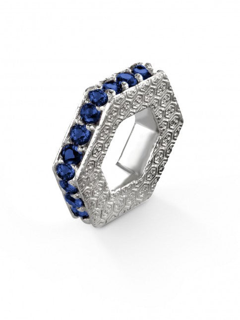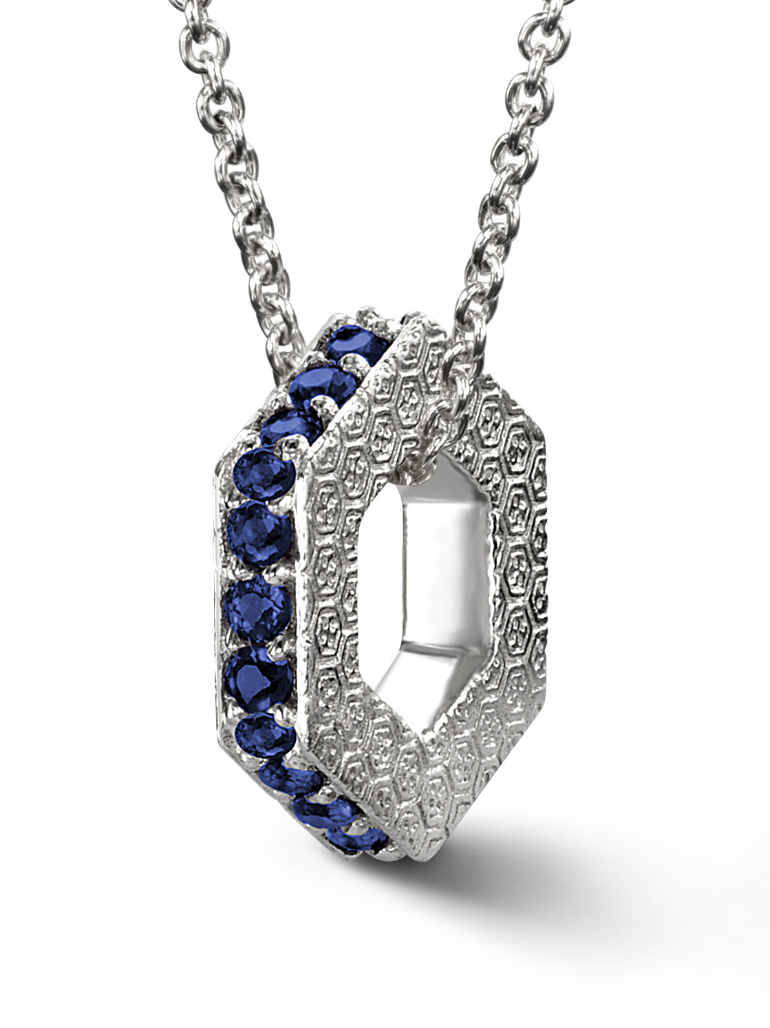 Beautiful Sterling Silver Hexagon Pendent with engraved pattern and Genuine Sapphire Stones.