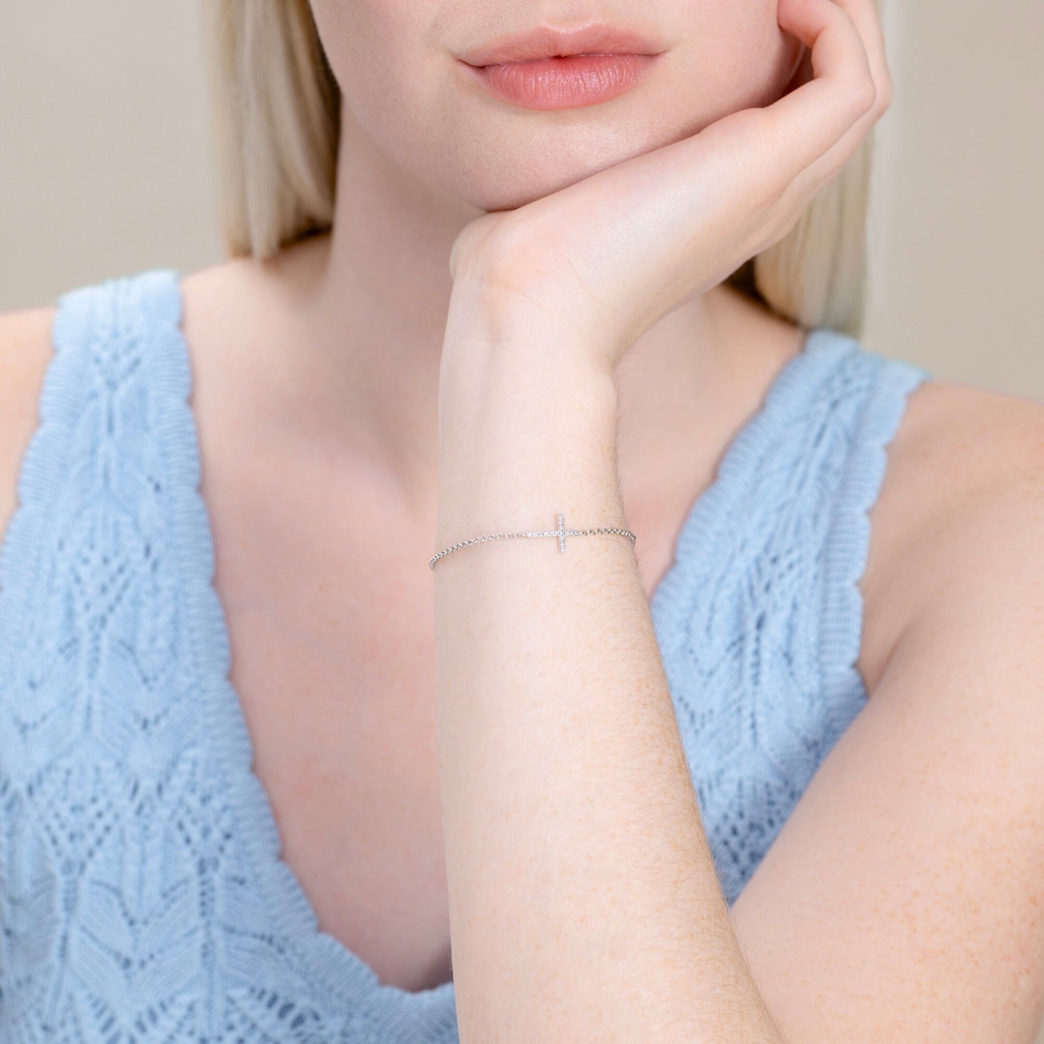 This delicate bracelet features a lab-grown diamond cross, adding a subtle glimmer to your everyday moments. A timeless symbol of grace and strength, it's perfect for layering or wearing solo.