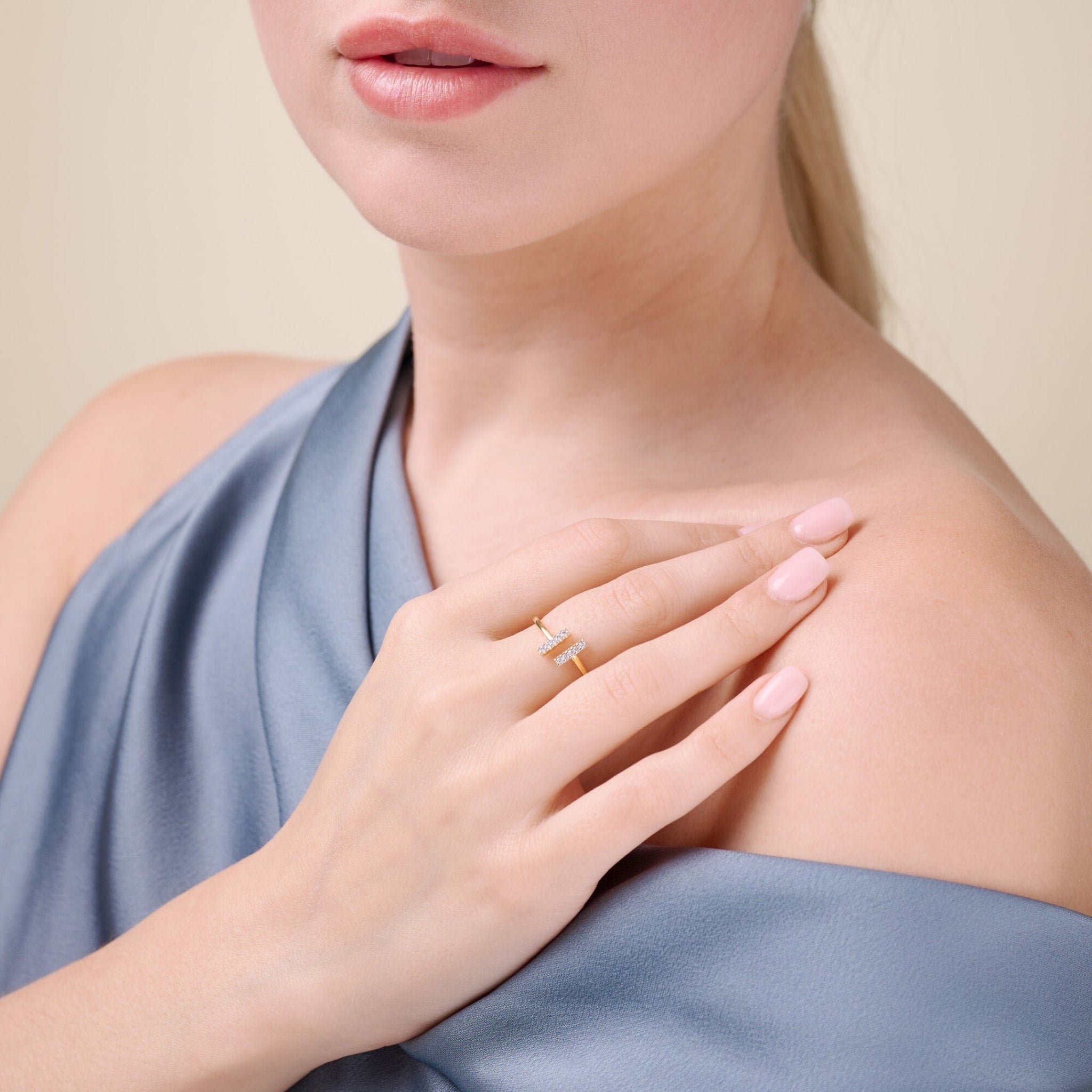 Lab-Grown Diamond Parallel Bars Silver Open Ring